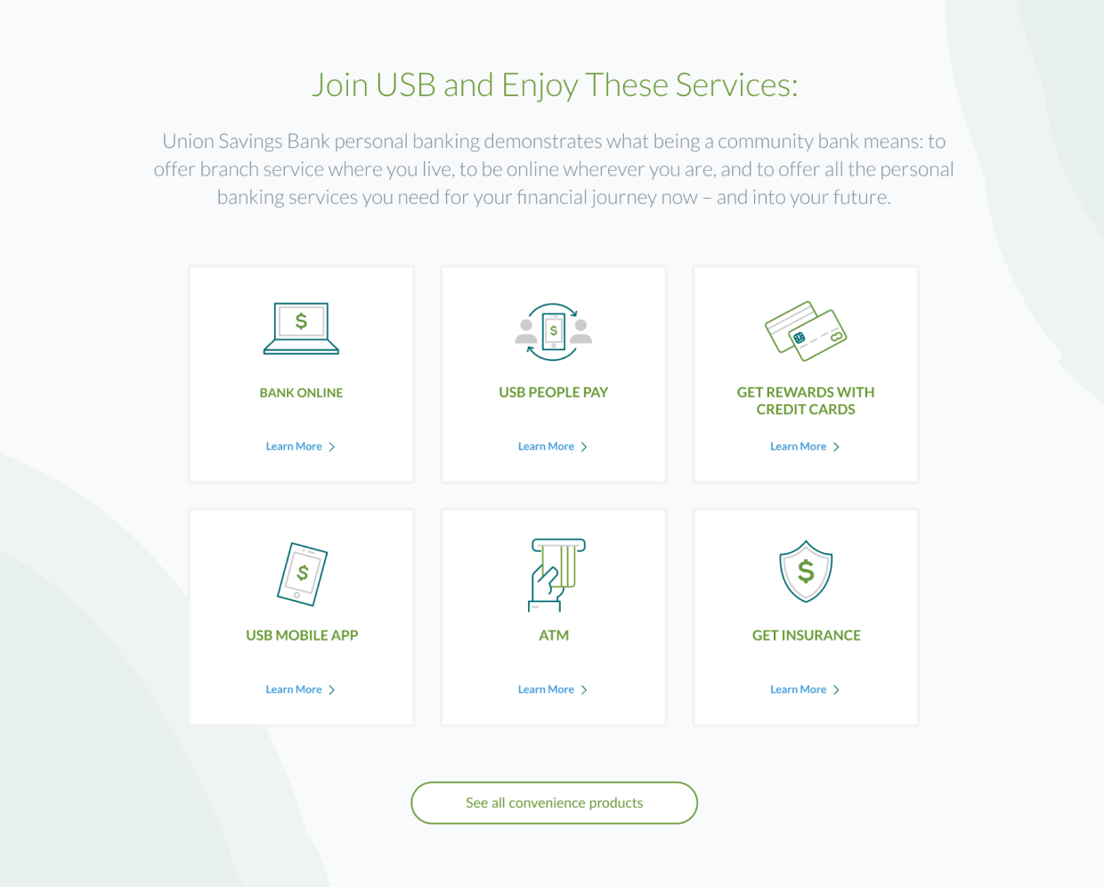 Union Savings Bank is one of the largest community banks in Connecticut, with over 25 branches. They offer a comprehensive range of banking products and services throughout western Connecticut. More than just a bank, USB is a community-rooted institution, made up of expert advisors who are driven by a mission to help their customers grow and succeed.