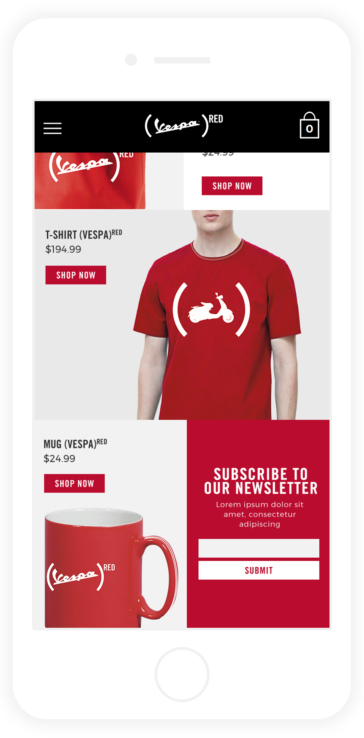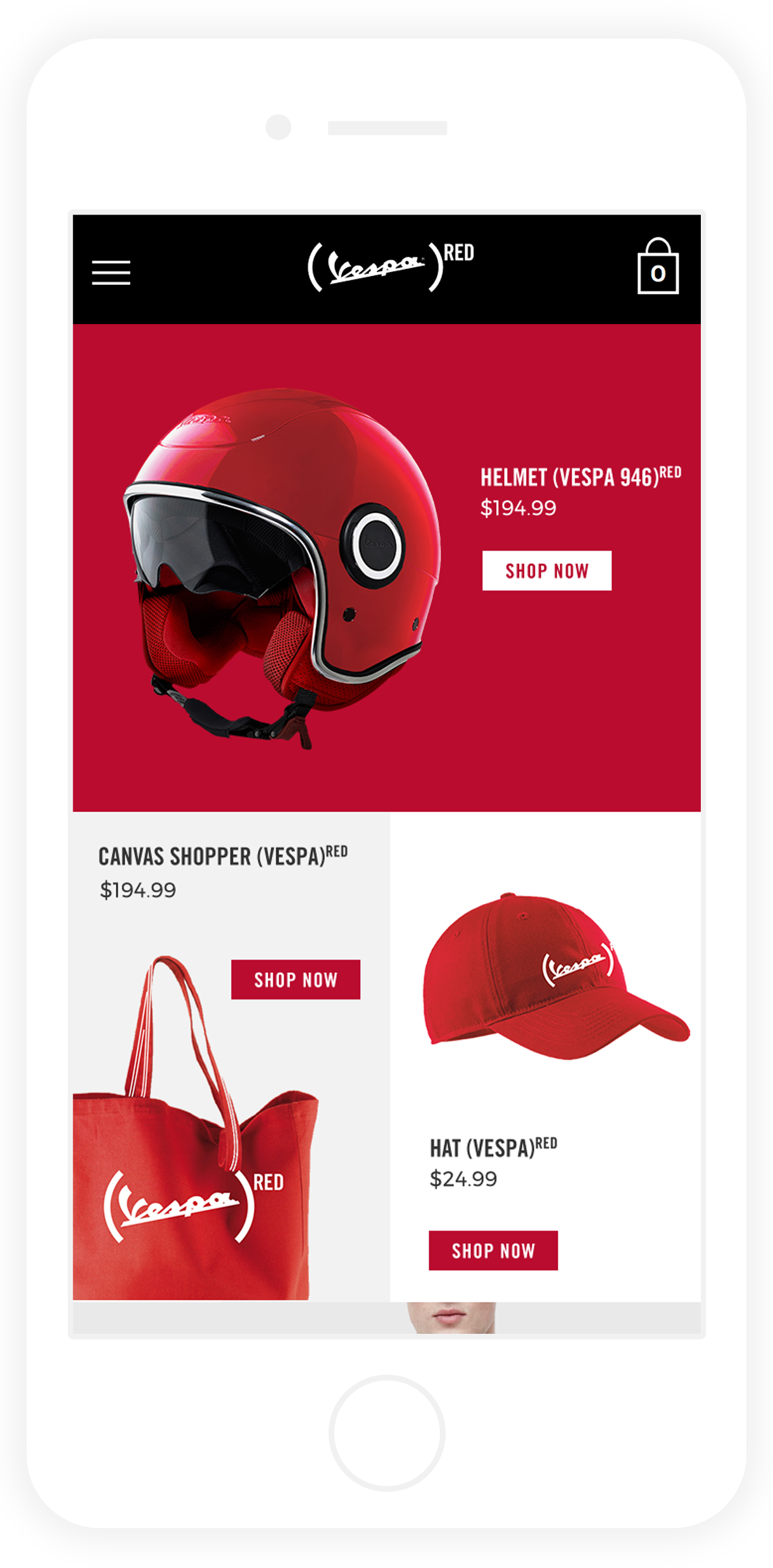 We were brought in as the digital team for Vespa in North America, handling all aspects of their technology build infrastructure development. The visuals here showcase a two-week campaign we developed for a collaboration between Vespa USA and Red, but this is just a drop in the bucket of a much larger initiative we spearheaded. We were Vespa’s North American partner for a decade, and as such, our work took on a deep technological focus.